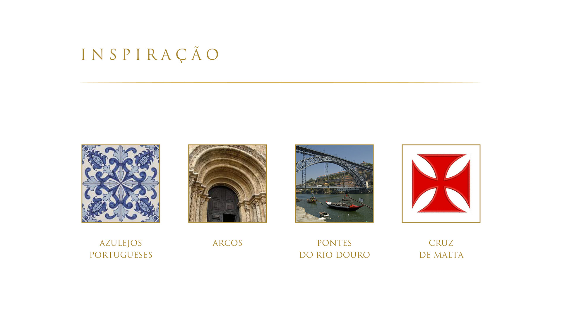 A grande fonte de inspiração, inevitavelmente, vem do outro lado do Atlântico. A arquitetura portuguesa com suas construções em arcos, ajudaram a dar vida à marca. Através deles foi possível obter todas as formas da marca Empório Casa Porto. Da Cruz de Malta ao resultado final em formato de azulejo, tudo foi planejado para traduzir os pensamentos, os sentimentos e a alma portuguesa.